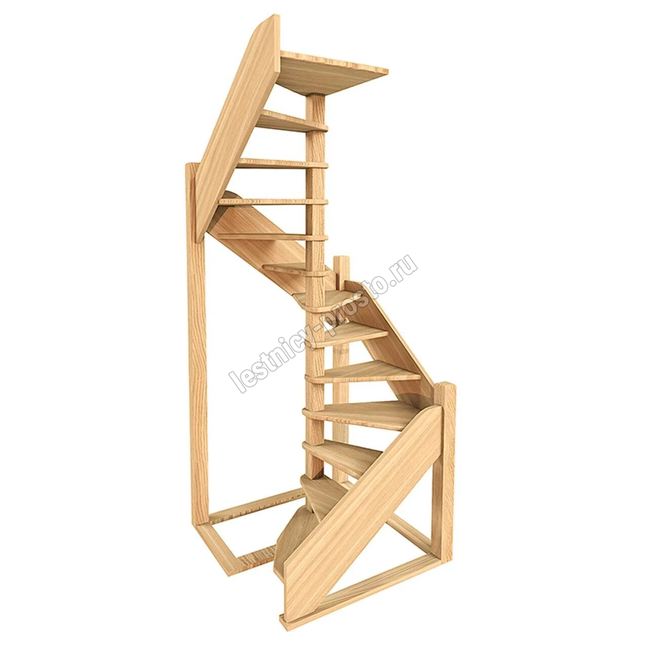 Деревянная межэтажная лестница ЛЕС-1,2ВУ, Лиственница