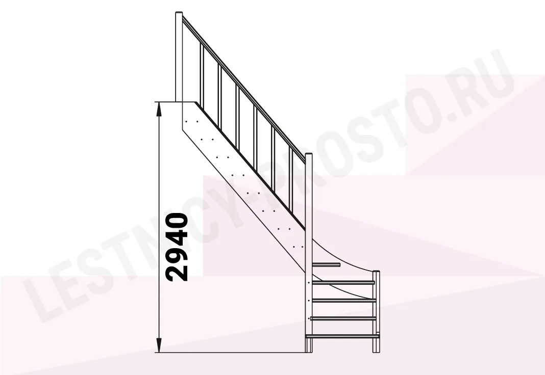 Базовый комплект включает в себя деревянные элементы лестницы и ограждения без какого-либо покрытия.