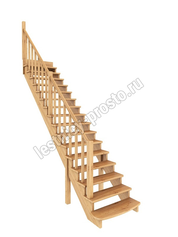 Базовый комплект включает в себя деревянные элементы лестницы и ограждения без какого-либо покрытия.