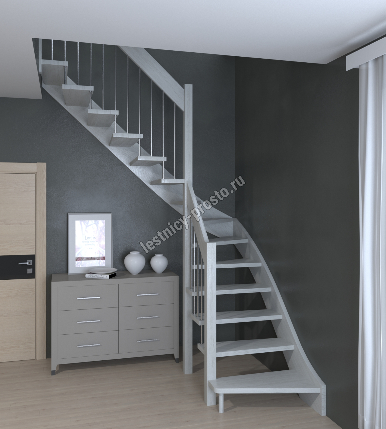 Лестница Prosto Console г-образная забежная сосна, h260 см