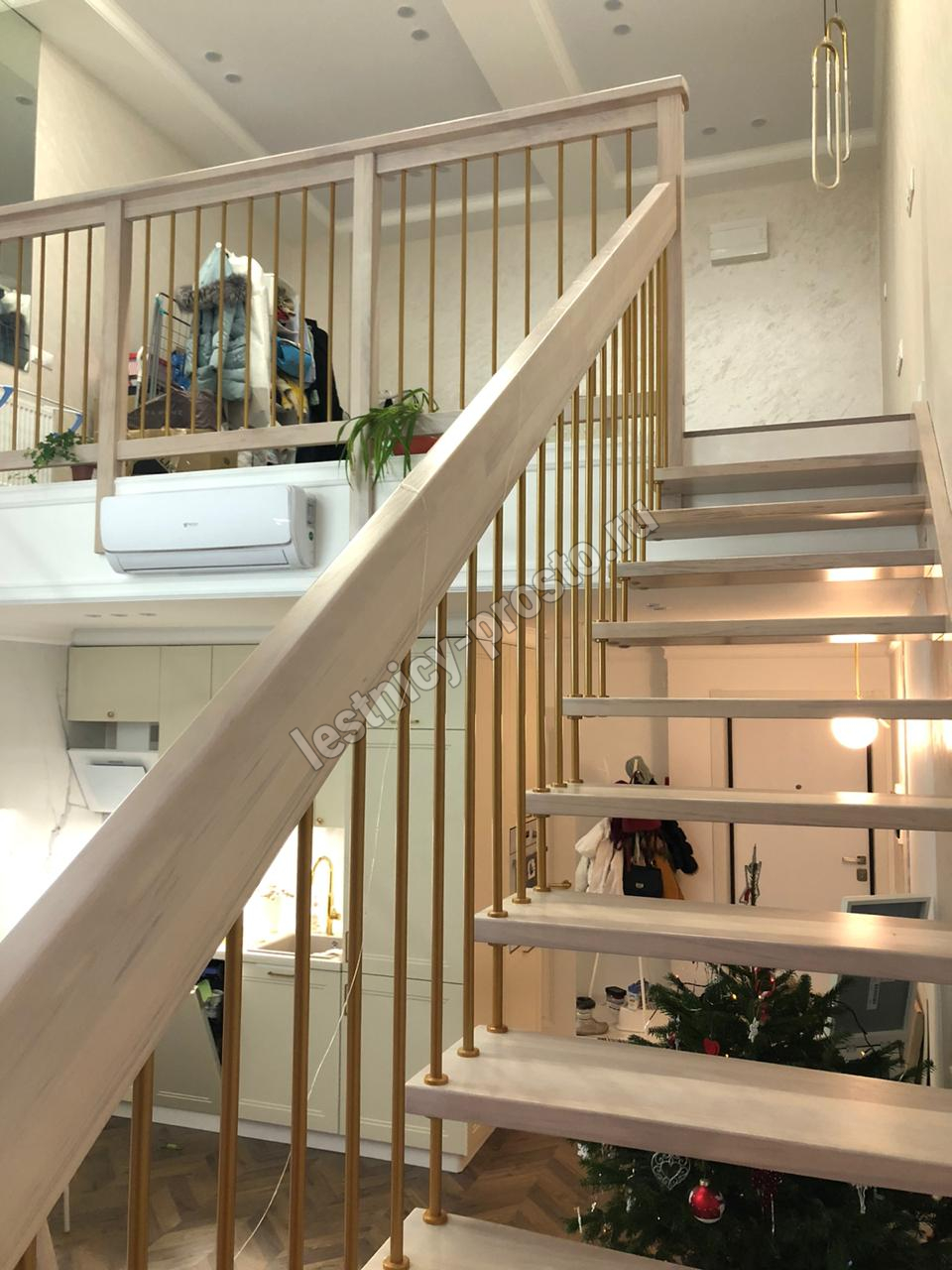 возможна комбинированная лестница: из сосны (ступени бук, ясень, дуб);