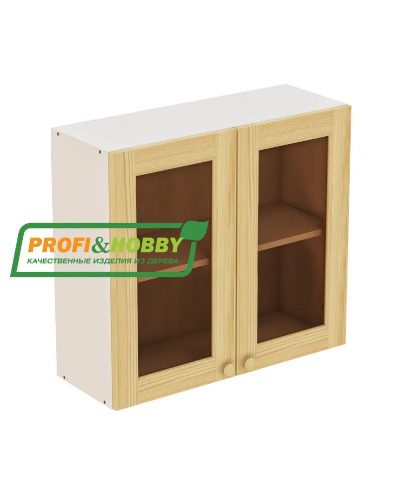 Шкаф навесной 2 двери 800х340х720 + фасад сосна под стекло бесцветный акриловый лак