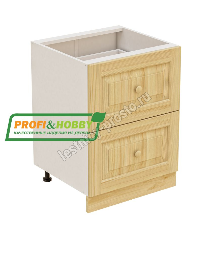 Тумба 2 ящика 600х530х720 + фасад сосна бесцветный акриловый лак