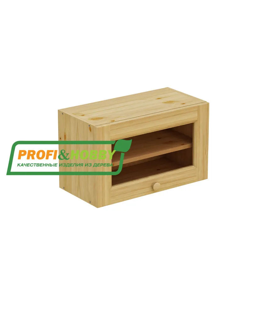 Шкаф-антресоль навесной 600 х 300 х 360, под стекло, сосна, бесцветный акриловый лак
