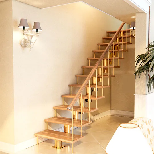 Базовый комплект включает в себя деревянные элементы лестницы, подступенки и ограждения без какого-либо покрытия. Вы можете заказать у нас покраску лестницы в цвета, отвечающие особенностям вашего помещения.
