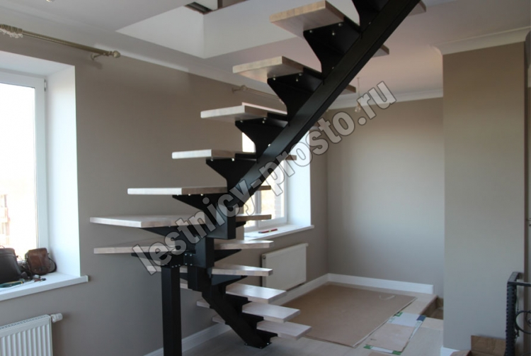 Лестница PROSTO MONO прекрасно подходит для интерьеров с минималистичным дизайном, дизайном в стиле лофт или хайтек. Основой лестницы служит цельносварной центральный косоур, который обеспечивает надёжную прочность конструкции и "парящий" дизайн, лестница с таким каркасом в интерьере смотрится легко и воздушно.