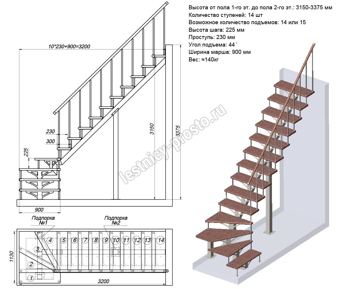 - таким образом вы получаете возможность увеличить общую высоту подъёма лестницы до необходимой.