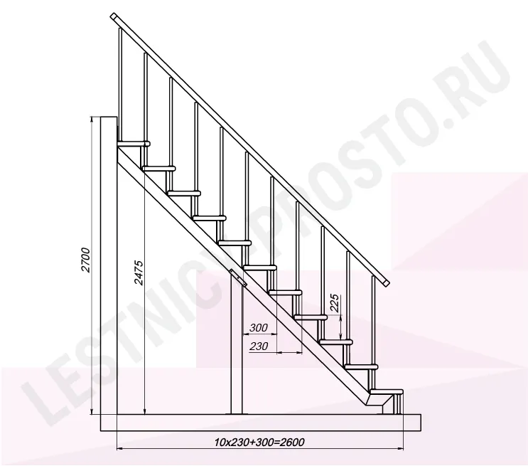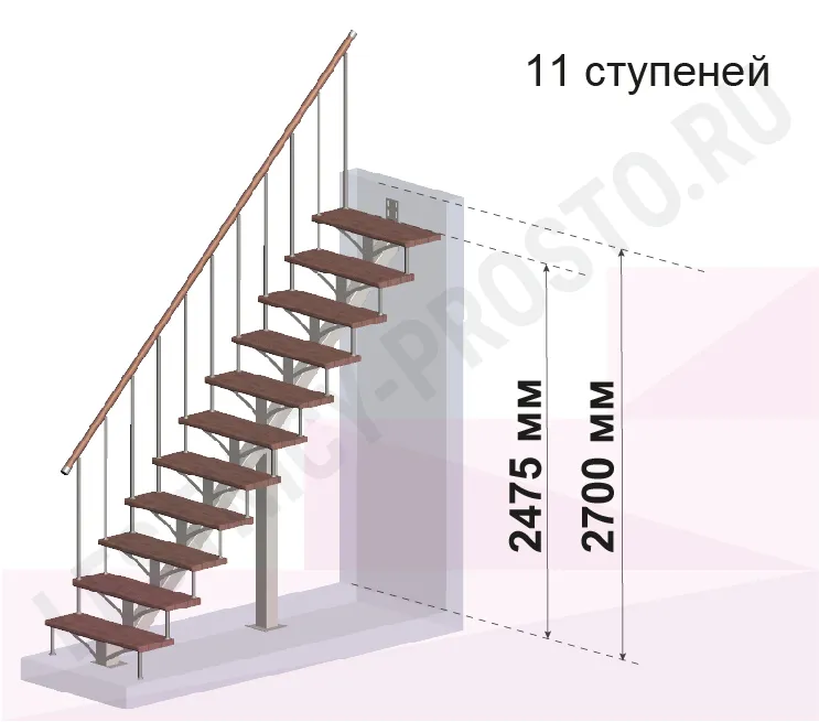 Лестница PROSTO MONO прямая, h270 см, ступени бук