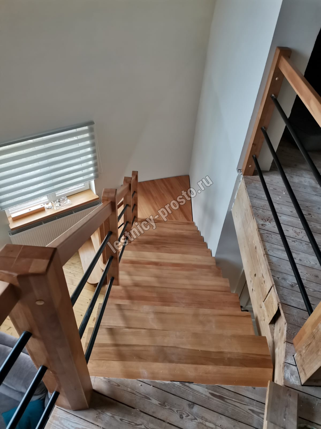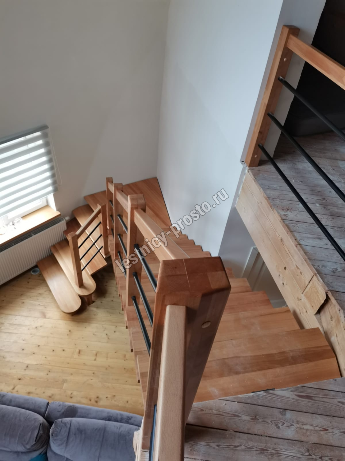 Лестница PROSTO MONO STEP г-образная с площадкой