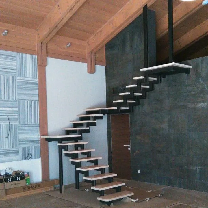 Каркас лестницы представляет собой набор модулей, которые комплектуются уже готовыми к монтажу.