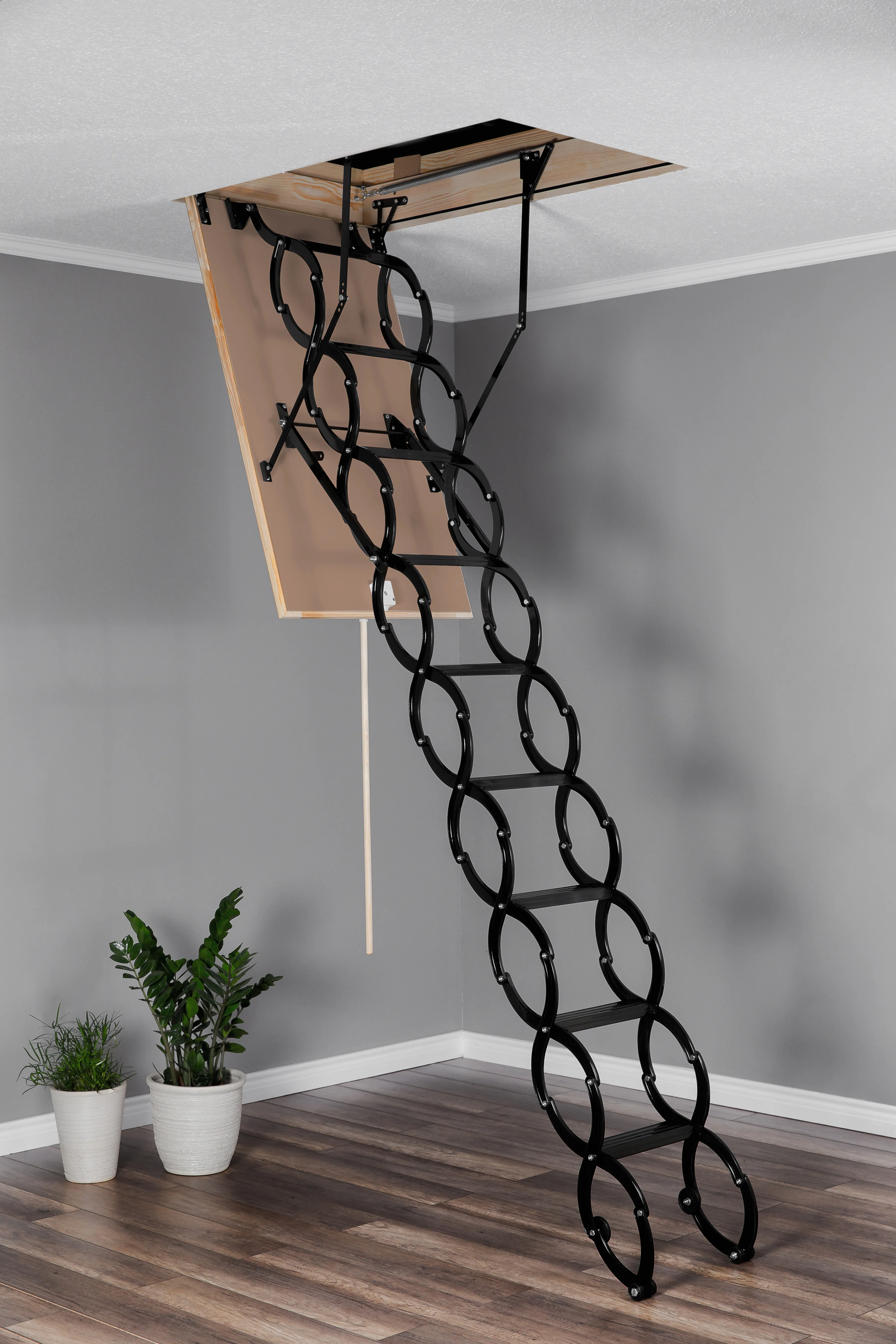 - Возможность устанавливать лестницу как прямую, так и с поворотом внизу или вверху; при этом нужно понимать, что поворот менее удобен, чем прямой участок лестницы.