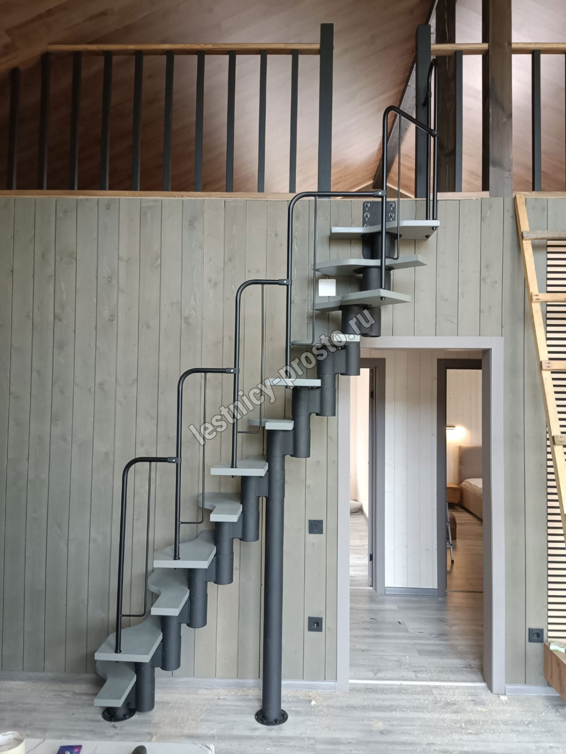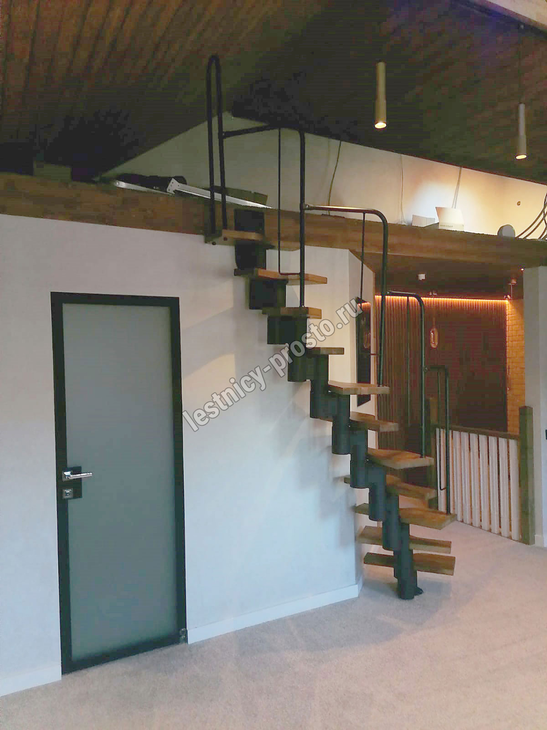 Лестница Prosto Urban Black гусиный шаг 700 мм, h198-288 см (11 ступеней), берёза мультиплекс