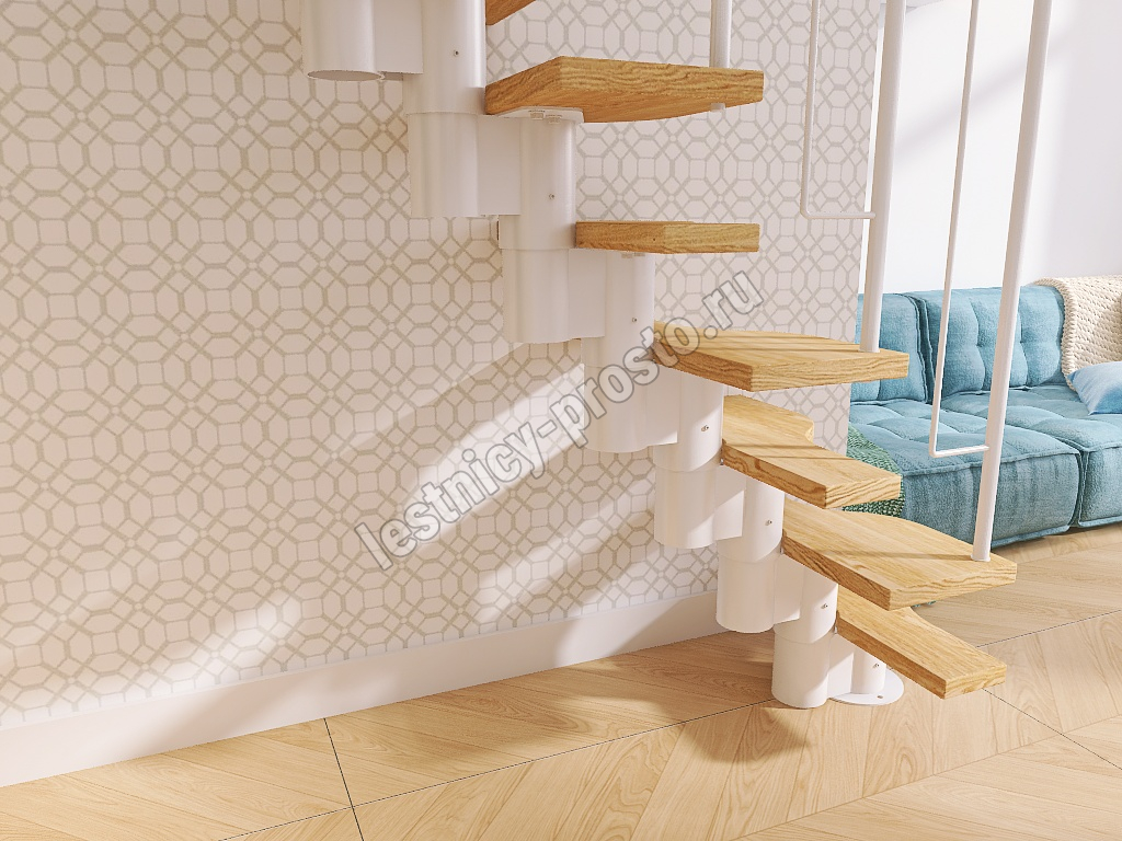 Лестница Prosto Urban White гусиный шаг 600 мм, h234-336 см (13 ступеней), дуб