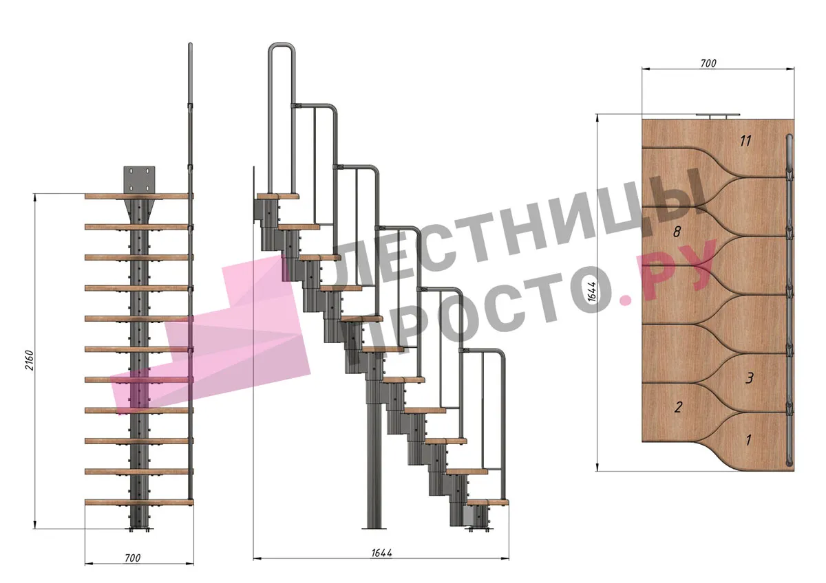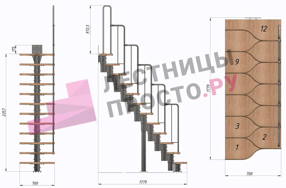 соответствует картинке, но вы не ограничены в его выборе. Лестницу можно приобрести и без ограждения, и с любым другим. Устанавливать на такую лестницу можно почти всё, начиная от классических деревянных балясин и заканчивая эксклюзивными коваными изделиями.