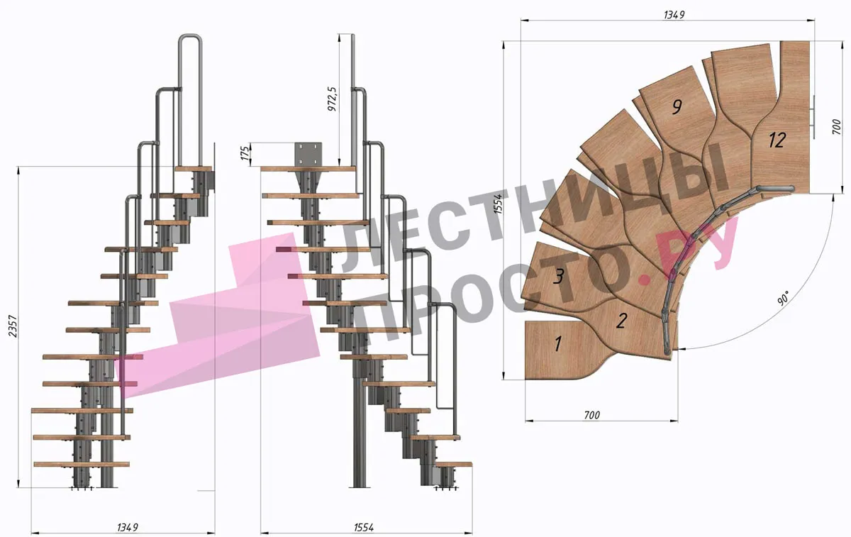 - Регулируемый по высоте в пределах 180-240 мм модуль. Большой диаметр и толщина металла деталей обеспечивают жесткость и прочность конструкции. Регулировка каждого модуля по высоте позволяет легко приспособить лестницу под ваше помещение.