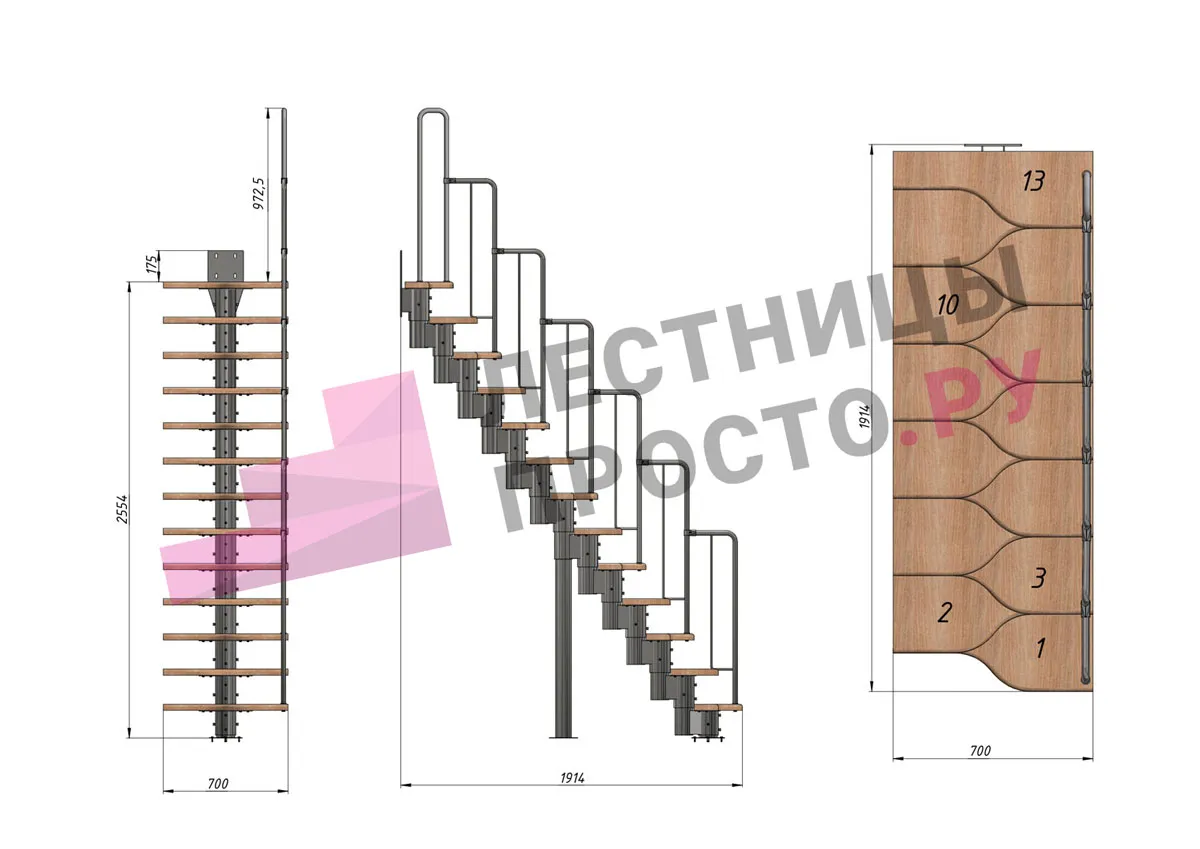 Лестница Prosto Urban White гусиный шаг 700 мм/Ступени из берёзы мультиплекс