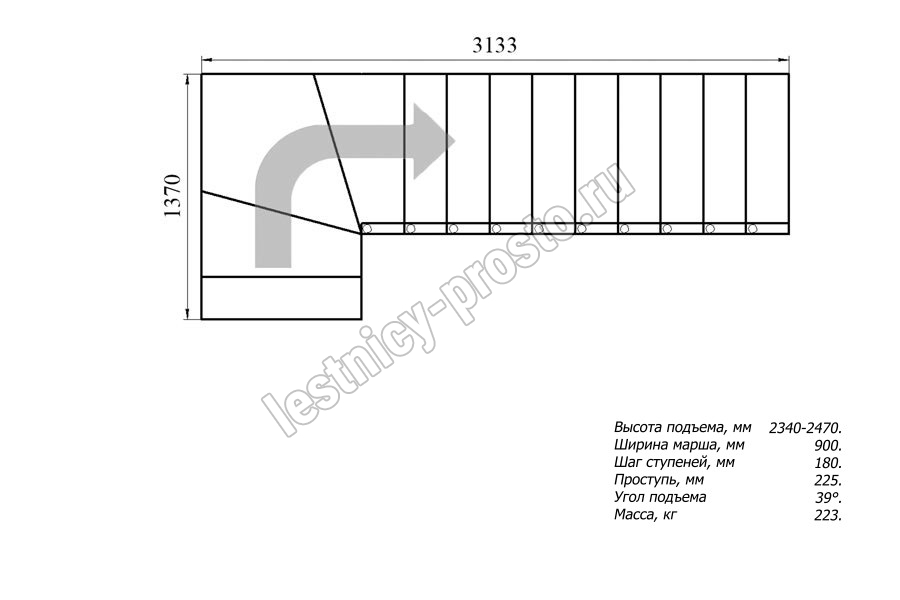 Модульная лестница Фаворит 180 2340-2470, Серый, Сосна, Крашеная, Без Ступений