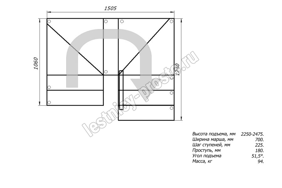 Модульная малогабаритная лестница Эксклюзив 2250-2475, Серый, Сосна, Крашеная, Без Ступений