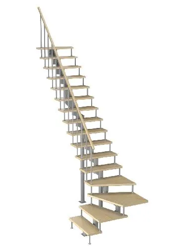 Модульная малогабаритная лестница Компакт 2250-2475, Серый, Бук, Нержавеющая сталь