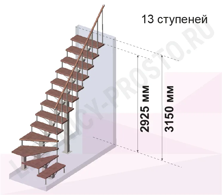 Лестница PROSTO MONO Г-образная h315 см, ступени хвоя |
