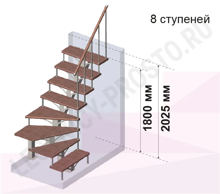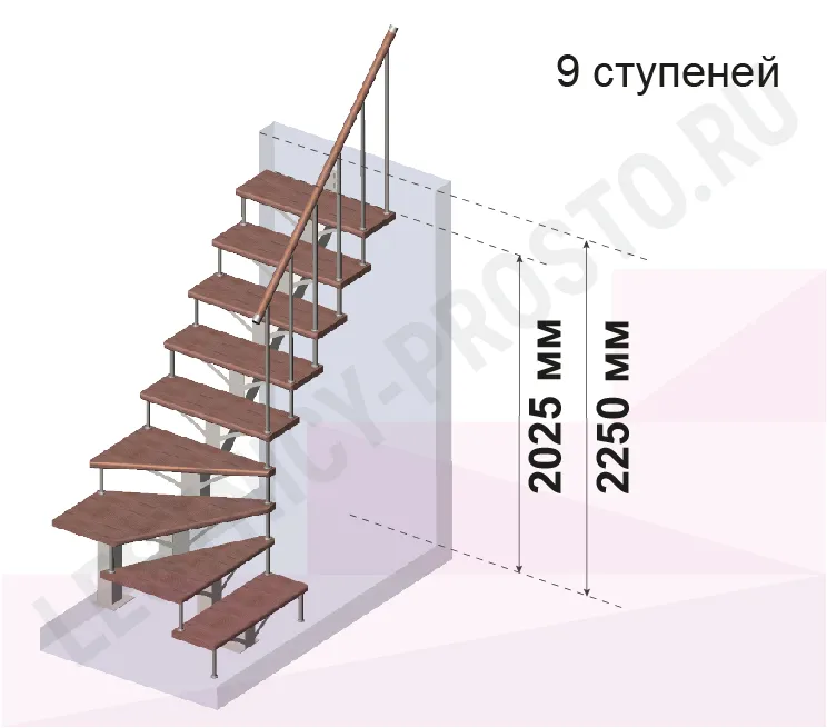 Лестница PROSTO MONO Г-образная h270 см, ступени хвоя |