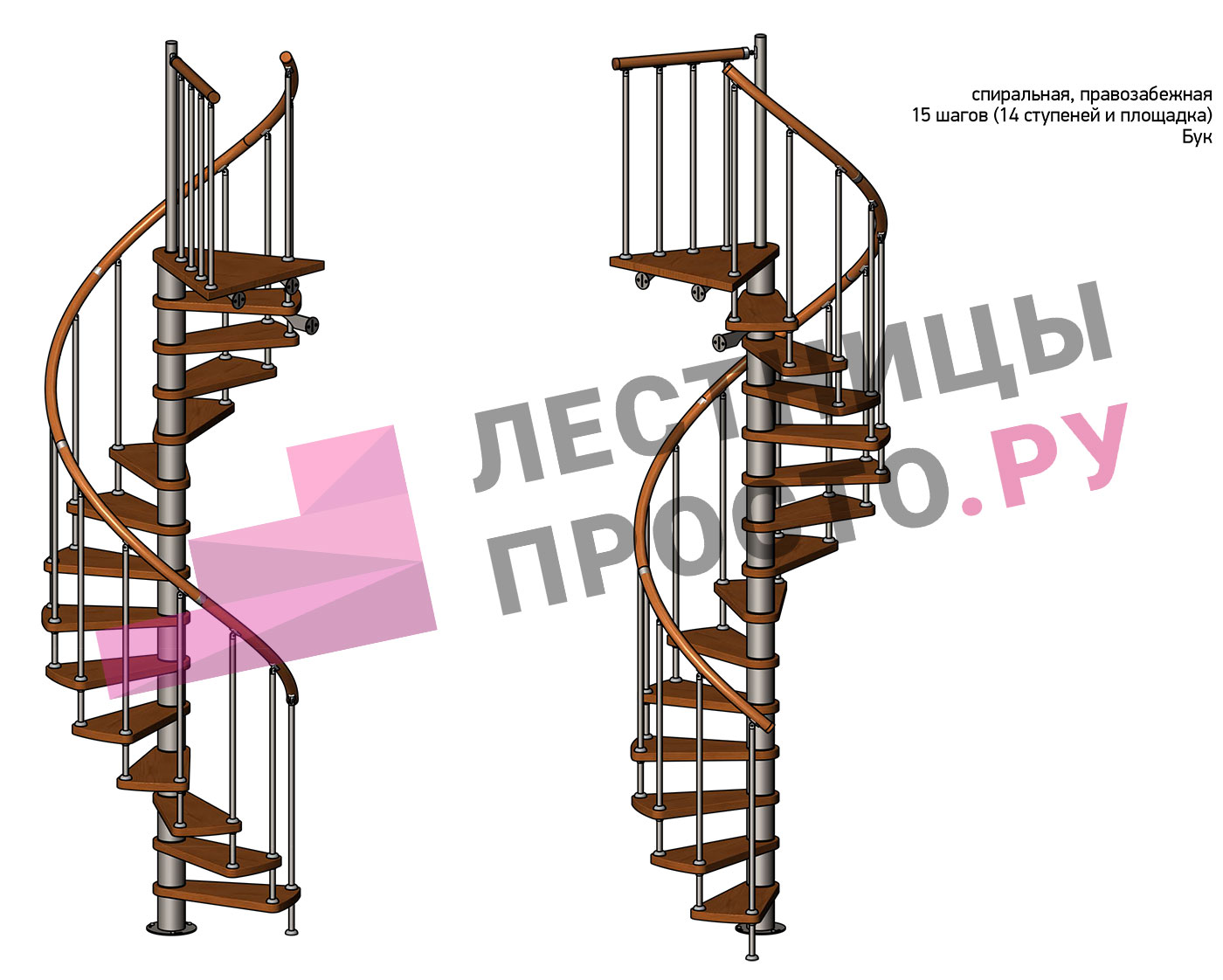 Винтовая лестница Prosto Spiral Black D120см, h325.7-369.8 см, бук
