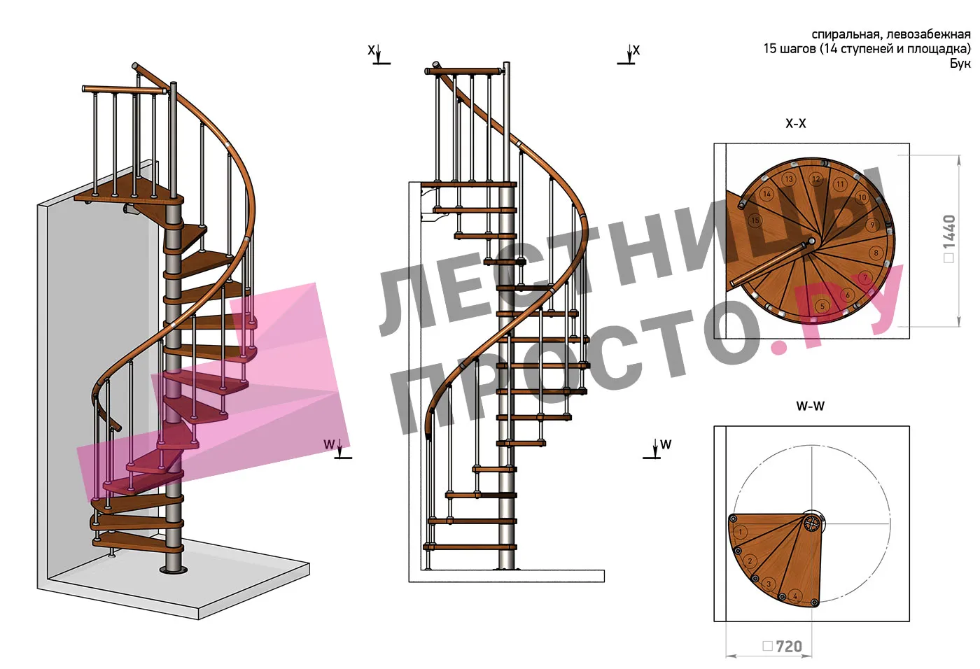Винтовая лестница Prosto Spiral Black D140см, h325.7-369.8 см, бук