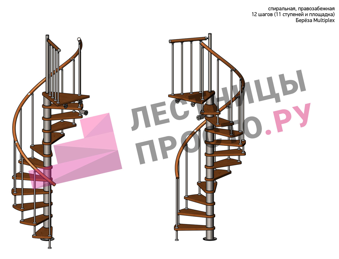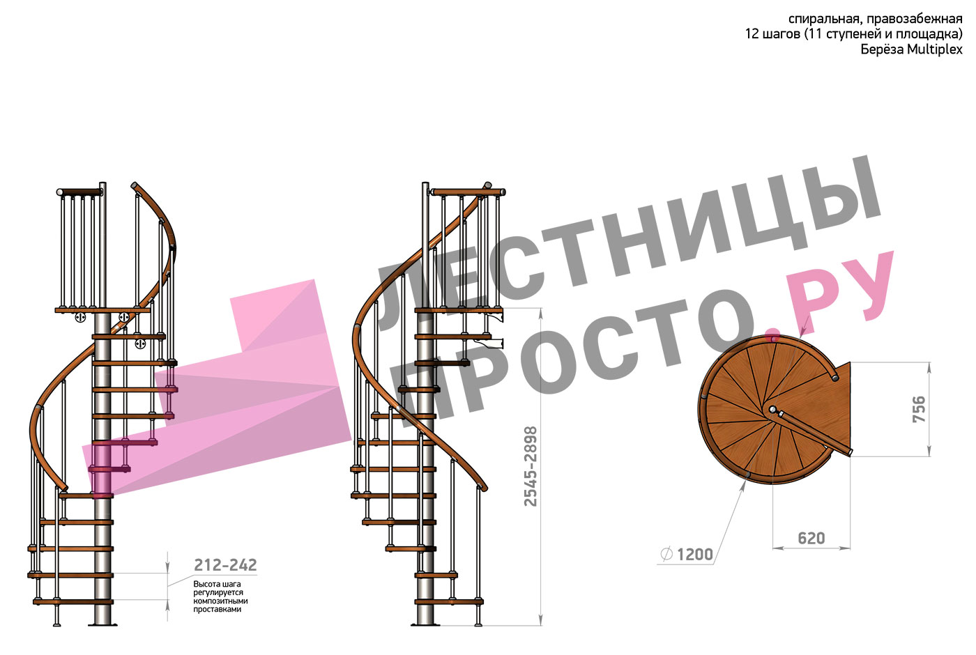 Винтовая лестница Prosto Spiral White D120см, h254.5-289.8 см
