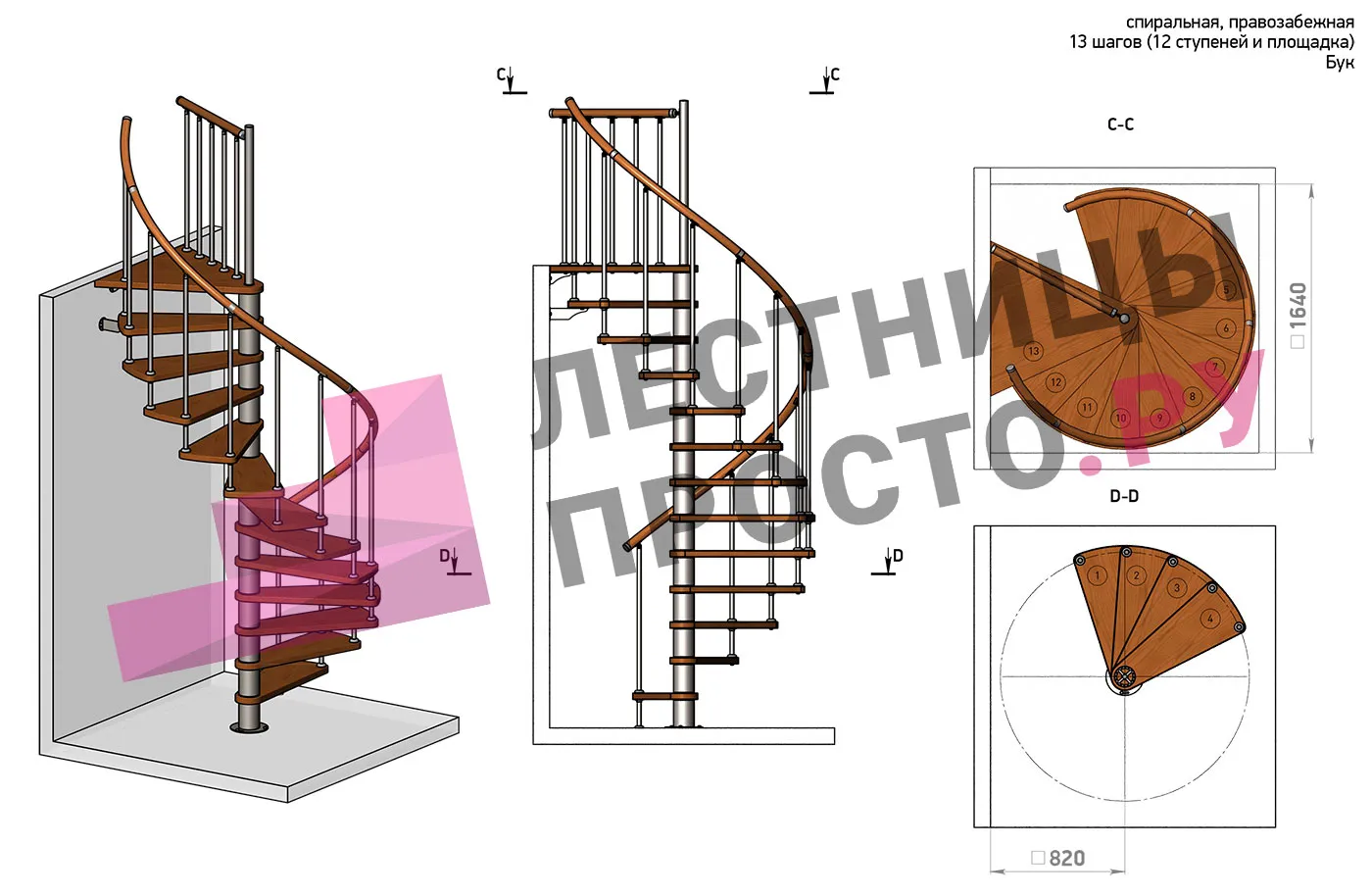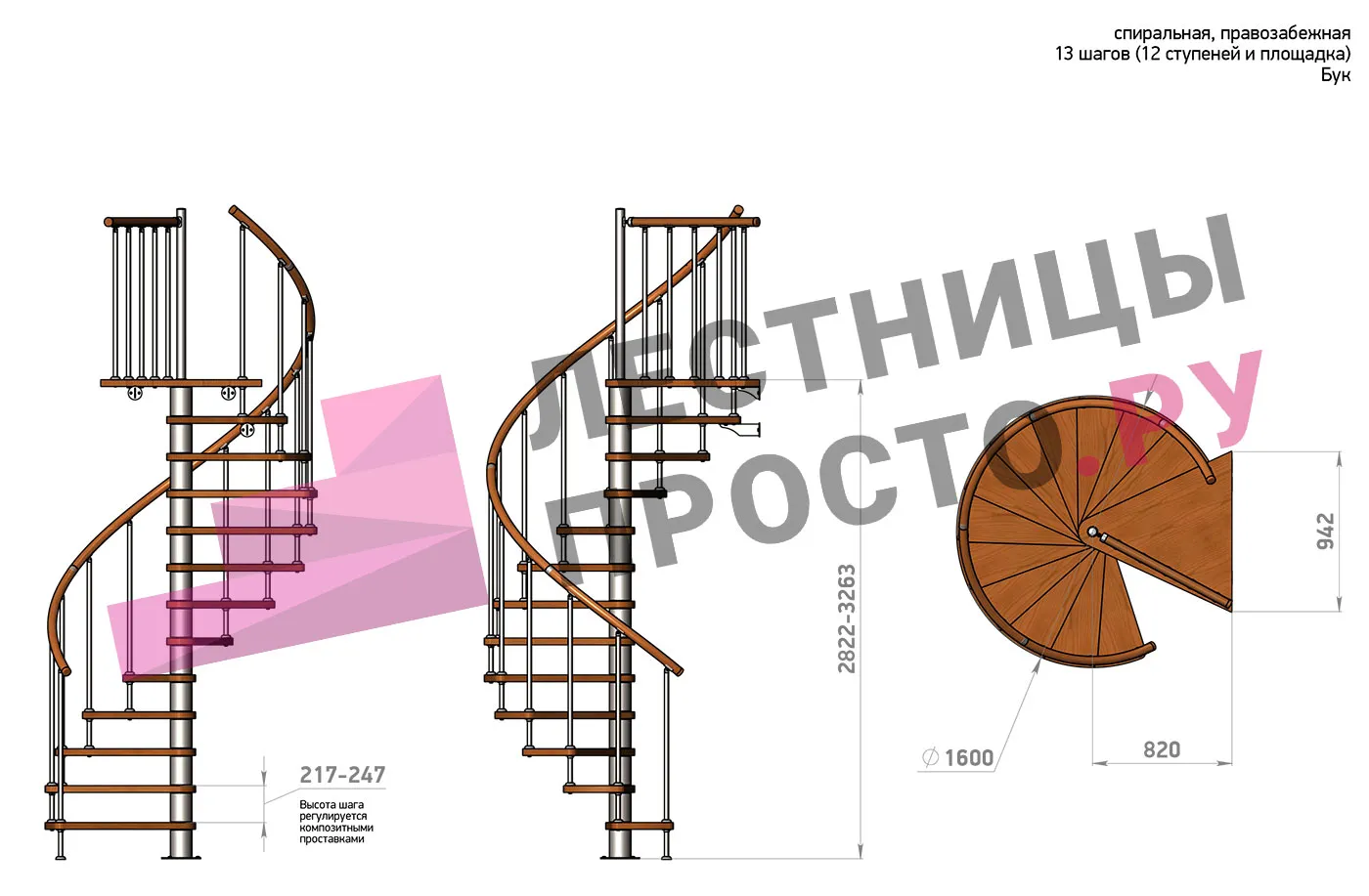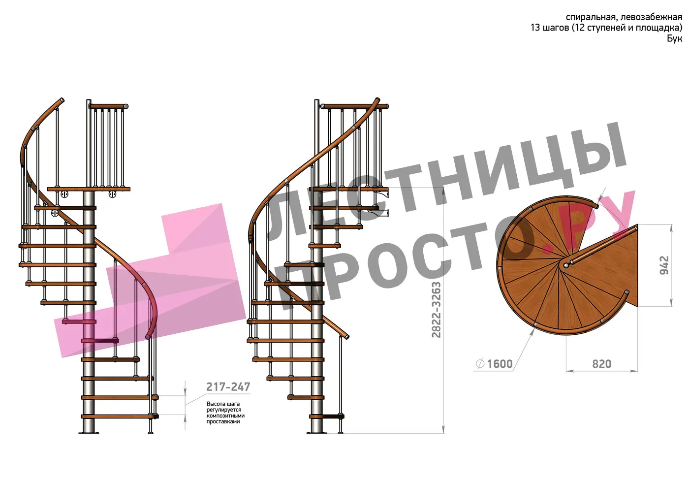 | Винтовая лестница Prosto Spiral White D160см, h282.2-326,3 см, бук |