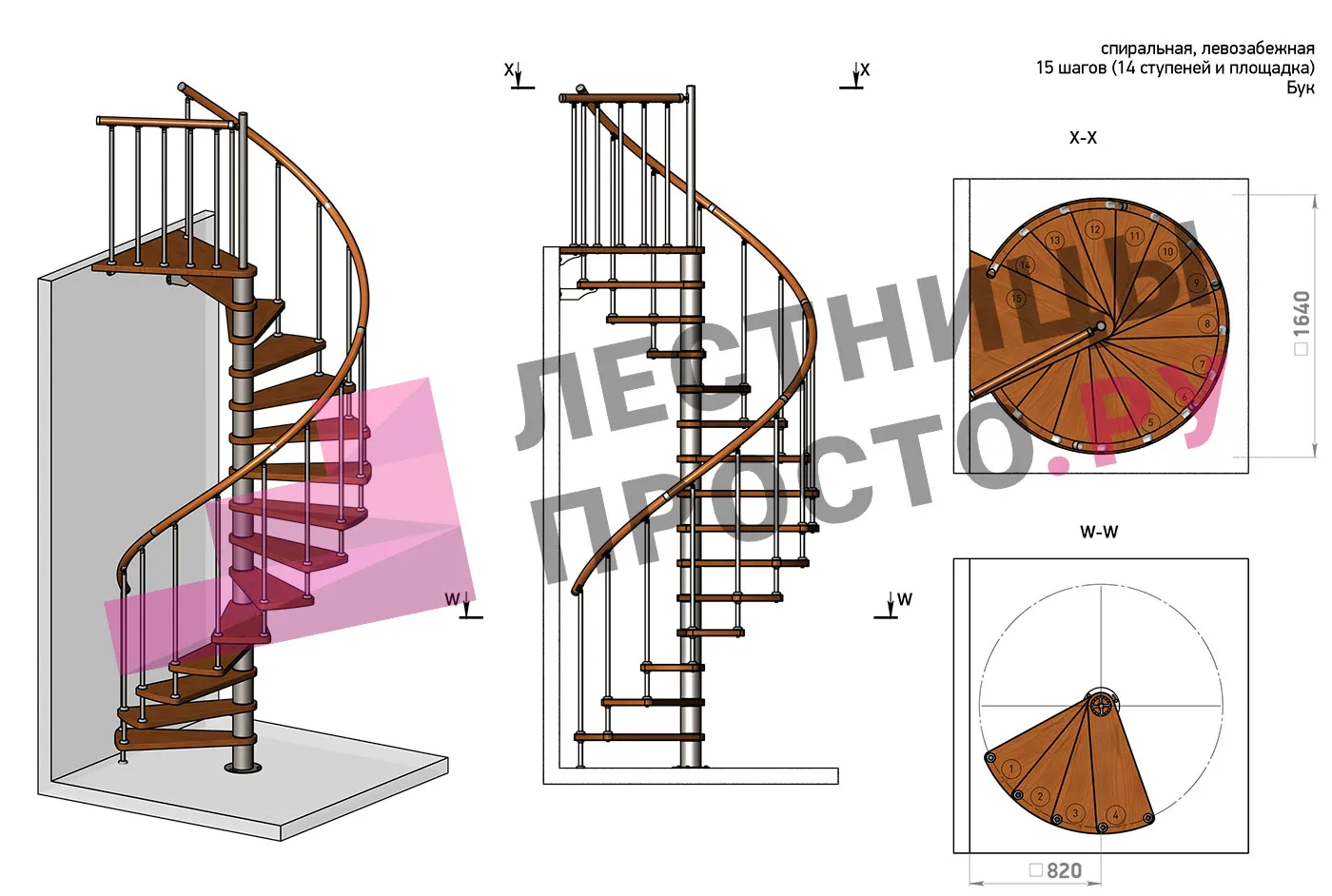 | Винтовая лестница Prosto Spiral White D140см, h303.9-348,1 см, бук |