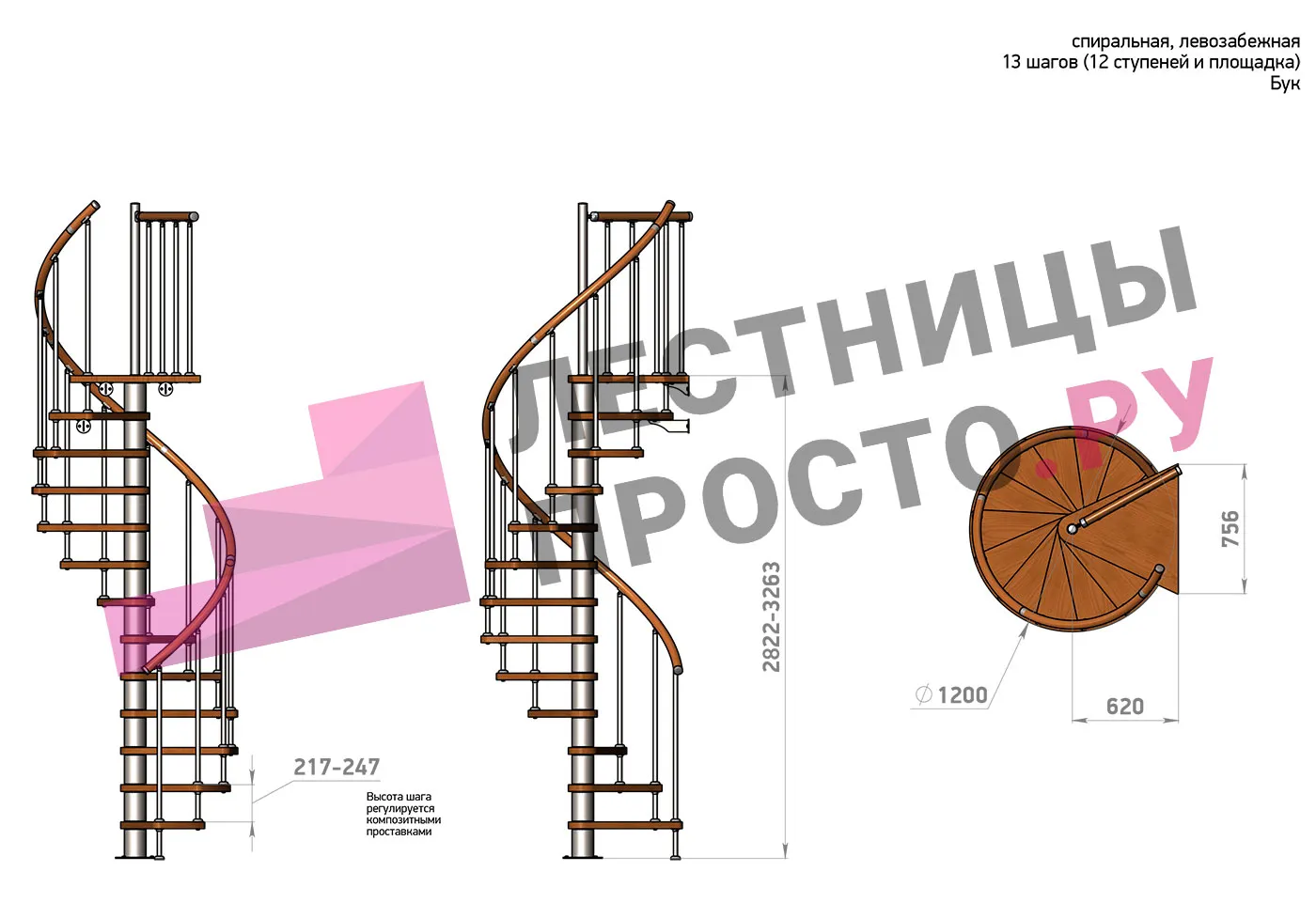 | Винтовая лестница Prosto Spiral White D120см, h282.2-326,3 см, бук |