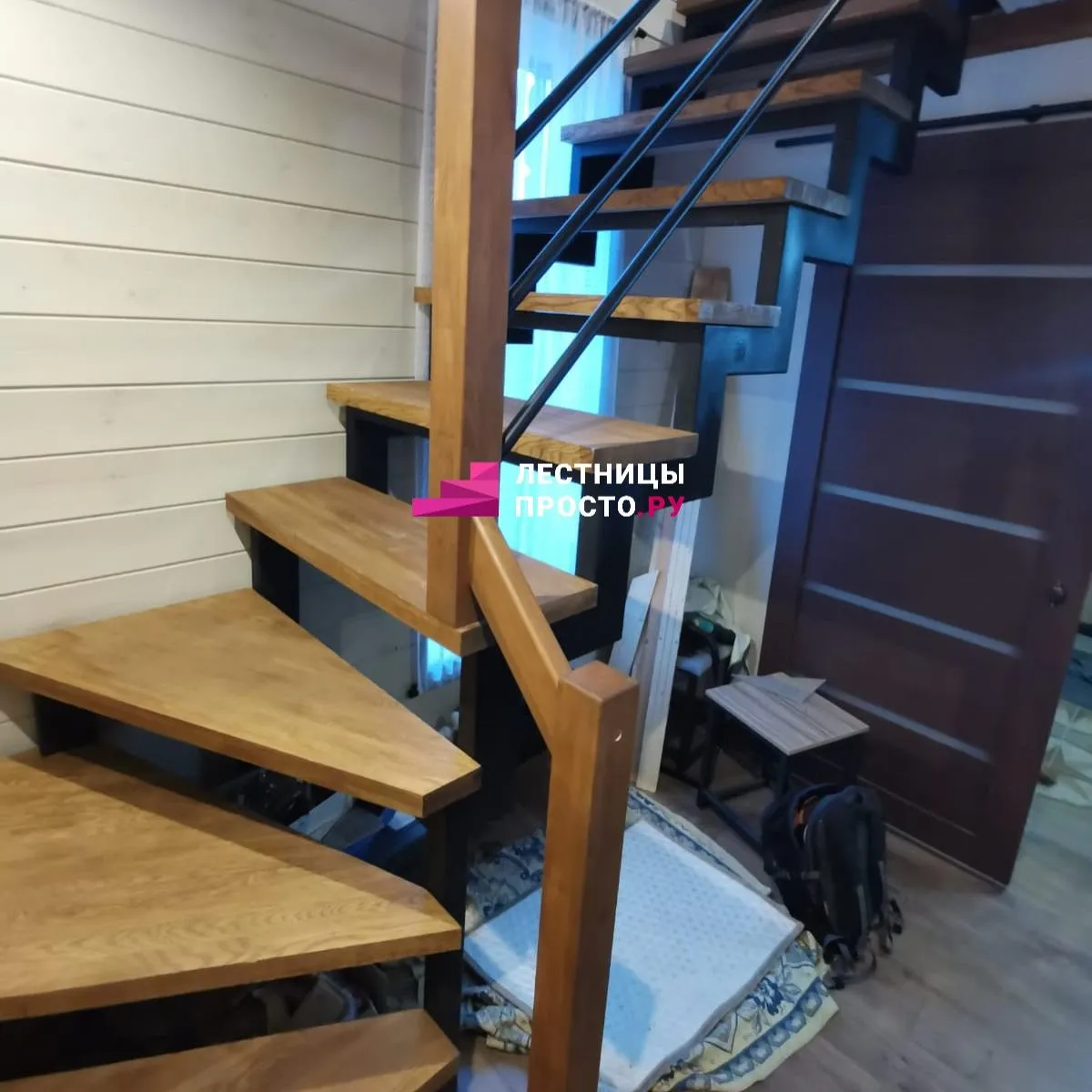 Лестница на центральном каркасе г-обр. металлик, ступени лиственница, LP-151021